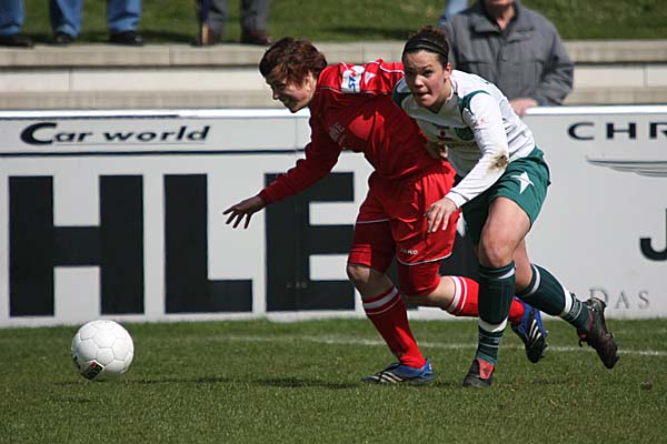 Grings und Jennifer Oster geblockt, im dritten Versuch kam Stephanie Goddard von der Strafraumgrenze zum Schuss und traf traumhaft in den Winkel. Zwei Minuten später hätte