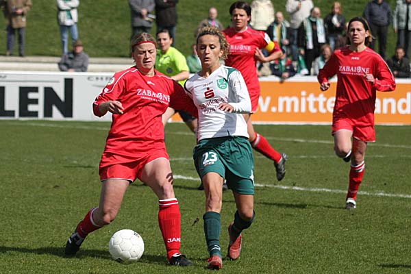 Inka Grings erfolglos im Strafraum, dann vergab Carina Breunig nach einer schönen Kombination über Carolin Hörber und Höss. Für den nächsten Treffer der Partie