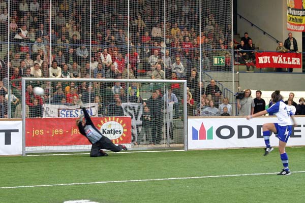 Das Spiel war sehr ausgeglichen, auch wenn es eher wenig Torchancen gab. Nachdem es nach zehn Minuten 1:1 stand, musste das Neunmeterschießen entscheiden. Frankfurt hatte lag schon im Vorteil, verschoß jedoch den dritten Strafstoß. Nach insgesamt zehn Neunmetern stand der Sieger fest. ![]() ![]() ![]() ![]() ![]() ![]() ![]() ![]() |