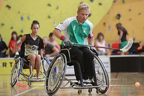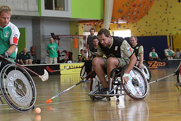 Die Zuschauer erlebten doch zwei sehr unterschiedliche Halbfinals: in der Partie zwischen den Schweden von Nacka HI und FBC United aus Budweis (CZE) gab es viele Zweikämpfe, die Offensivreihen konnten sich in einem schnellen Spiel auszeichnen und sorgten für eine kurzweilige Partie. Am Ende gewannen die Schweden verdient mit 4:2 und profitierten dabei vor allem davon, dass sie in völliger Dominanz bis zur zweiten Drittelpause mit 3:0 führten. Das rein niederländische Semifinal zwischen De Watergeuzen und Doing SV Zoetermeer hingegen sah 45 Minuten lang defensives Rollstuhl-Floorball, was dadurch doch eher weniger Attraktivität für den neutralen, nicht so bewanderten Zuschauer hatte. Auch dass in der gesamten regulären Zeit kein Tor gefallen - erst im Penaltyschießen, welches noch eine weitere deutliche Verzögerung in den Turnierplan brachte, konnte sich dann De Watergeuzen ins Finale schaukeln. ![]() ![]() ![]() ![]() ![]() ![]() ![]() ![]() ![]() ![]() ![]() ![]() ![]() ![]() ![]() ![]() ![]() |