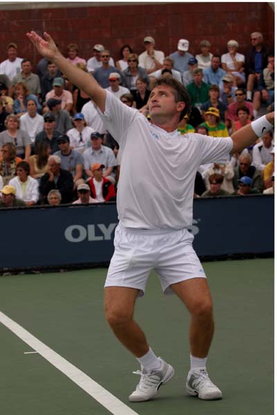 Diese Partie werde ich wohl nie vergessen. Leander und David waren schon die sicheren Verlierer, bereits im zweiten Satz sah es schlecht aus, im dritten Satz lagen die beiden 1:4 zurück, doch dann folgte eine Kampfleistung des Inders, die absolut seines gleichen sucht. Fünf Spiele in Folge für Paes und Rikl, dazu noch ein abgewehrter Breakball bei 6:5 30:40 und eigenem Aufschlag, viel spannender - und hochklassiger kann Doppeltennis nicht sein als in den letzten beiden Durchgängen. ![]() ![]() ![]() ![]() ![]() ![]() ![]() ![]() |
